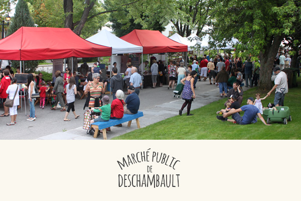 8, Chemin Petitclerc, Saint-AlbanTous les joursDe 9 h à 18 hLe lien Reconnu pour sa convivialité et l’accueil de ses artisans, le Marché public de Deschambault réunit une offre impressionnante de produits locaux. En plus de nos légumes, vous y trouverez fromages, pommes, petits fruits, agneau et chevreau, bœuf et veau, porc, volailles, vins, confitures et gelées, champignons, produits de l’érable, chocolats, alcools de fruits, pains et pâtisseries, savons, miel, huiles essentielles et mets préparés.